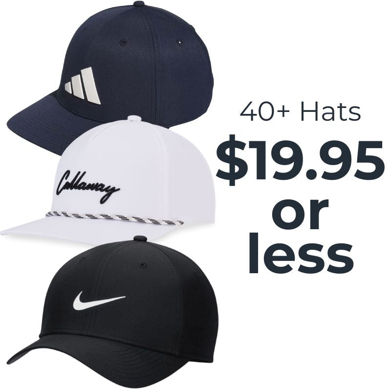 FootJoy Premiere Golf Shoes $90 off, 40+ styles of hats $19.95 or less, Titleist PRO V1 Golf Balls on sale, and 100+ Golf Polos marked down!