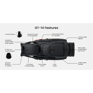 Top: 14-Way & Velvet Wrapped Dividers with full-length, fully enclosed sections, a large putter well for even the fattest grips, and 3 grab handles for easy loading and unloading.