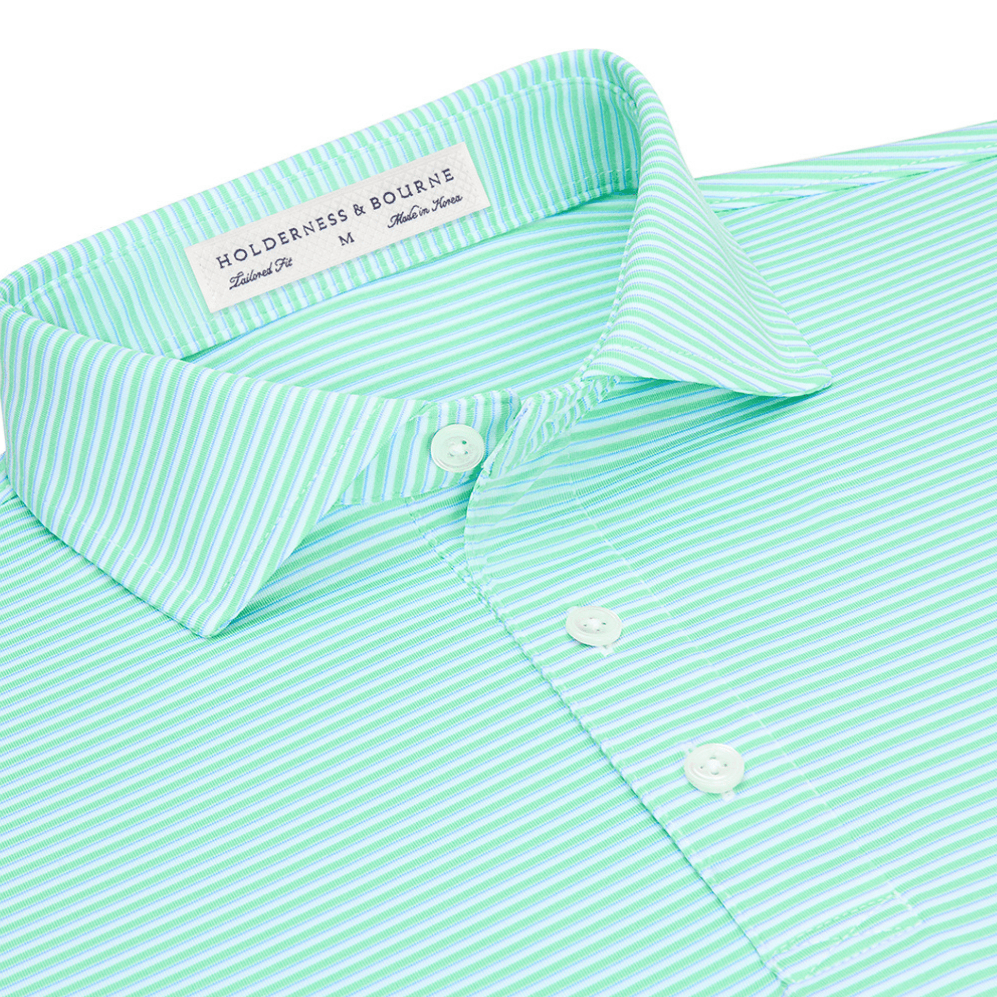 The Gresham offers a stylish stripe pattern anchored with white and blue for versatility. Cut from our lauded performance jersey knit fabric, this shirt delivers remarkably soft comfort along with excellent moisture wicking. Stretch fibers enhance range of motion and durability.