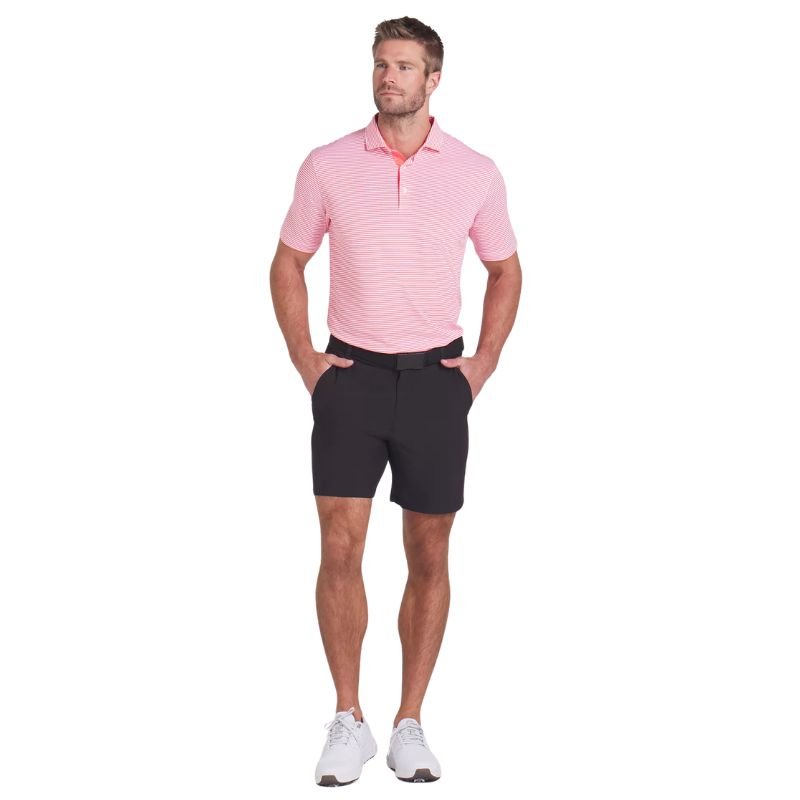 Breathability and comfort is the focus with our new Pique material. Featuring 4 way stretch and moisture wicking capabilities, this textured material will bring style and comfort on and off the course. Made with at least 70% recycled material as a step toward a better future.