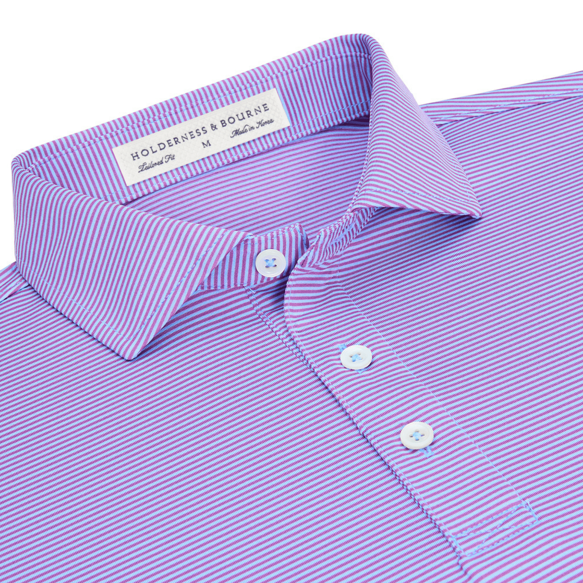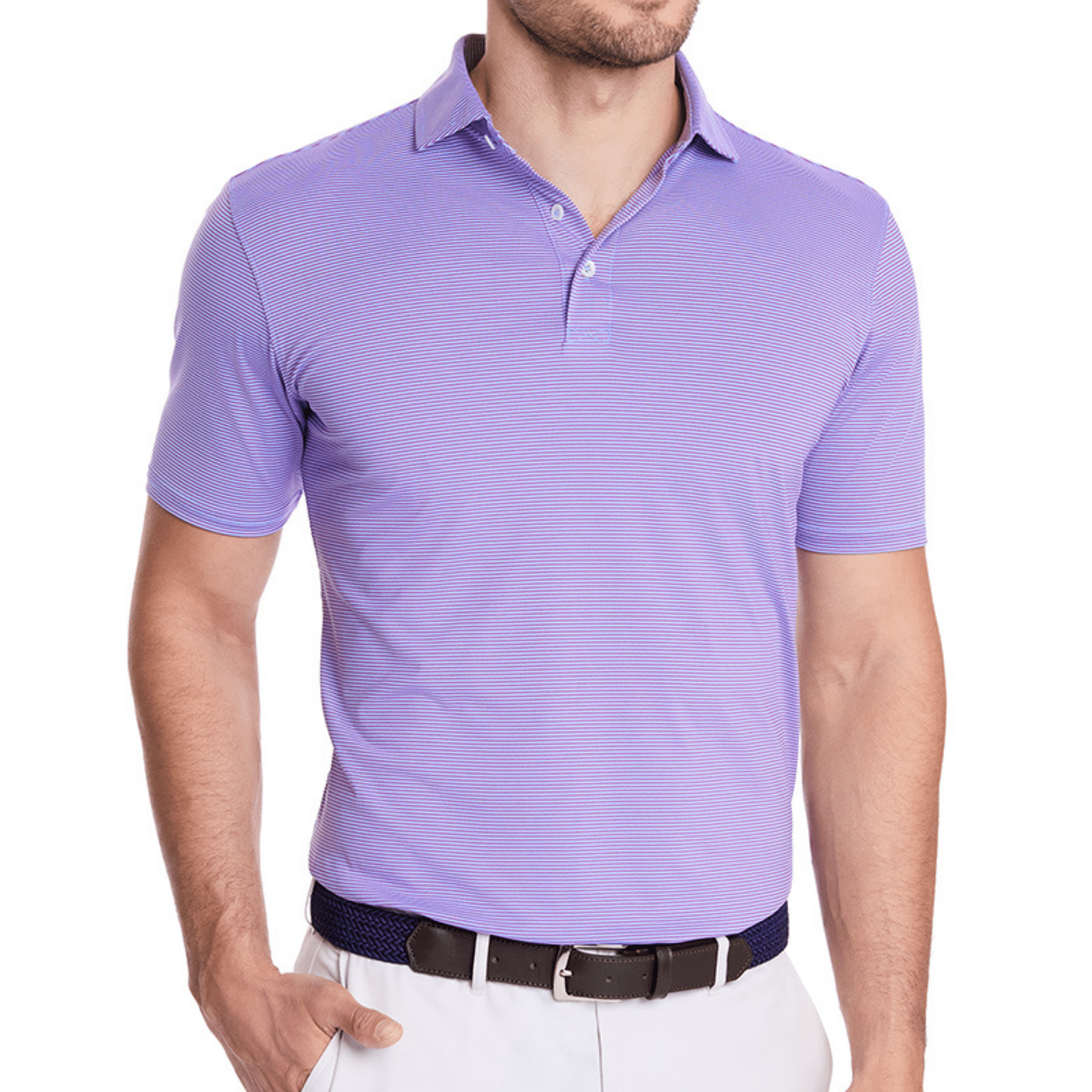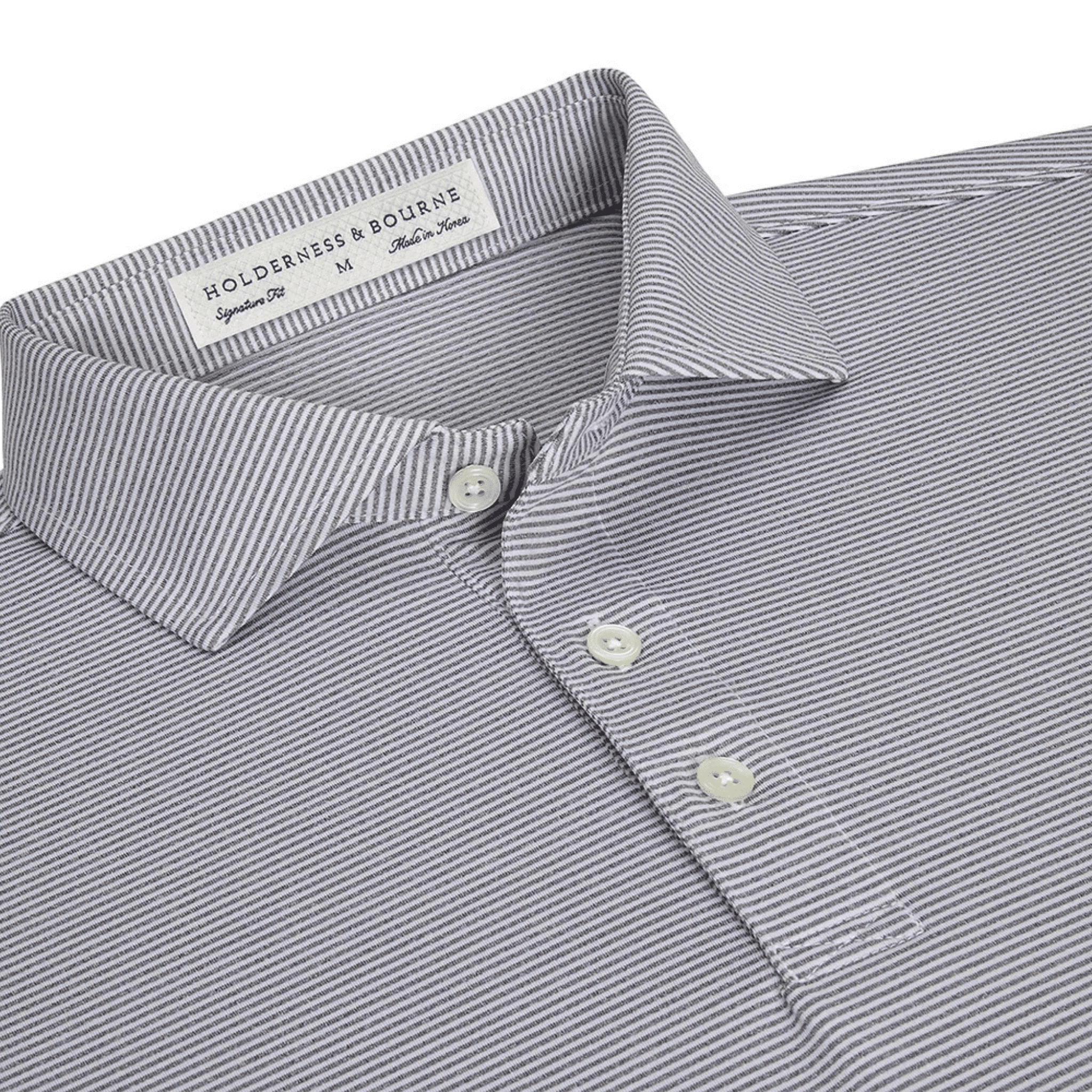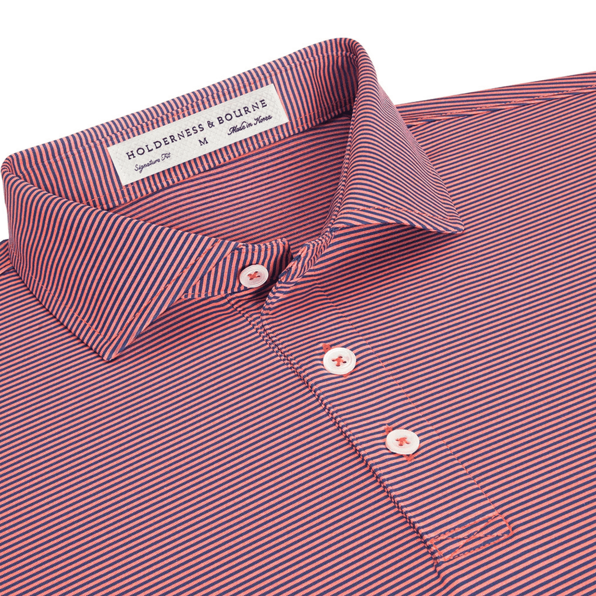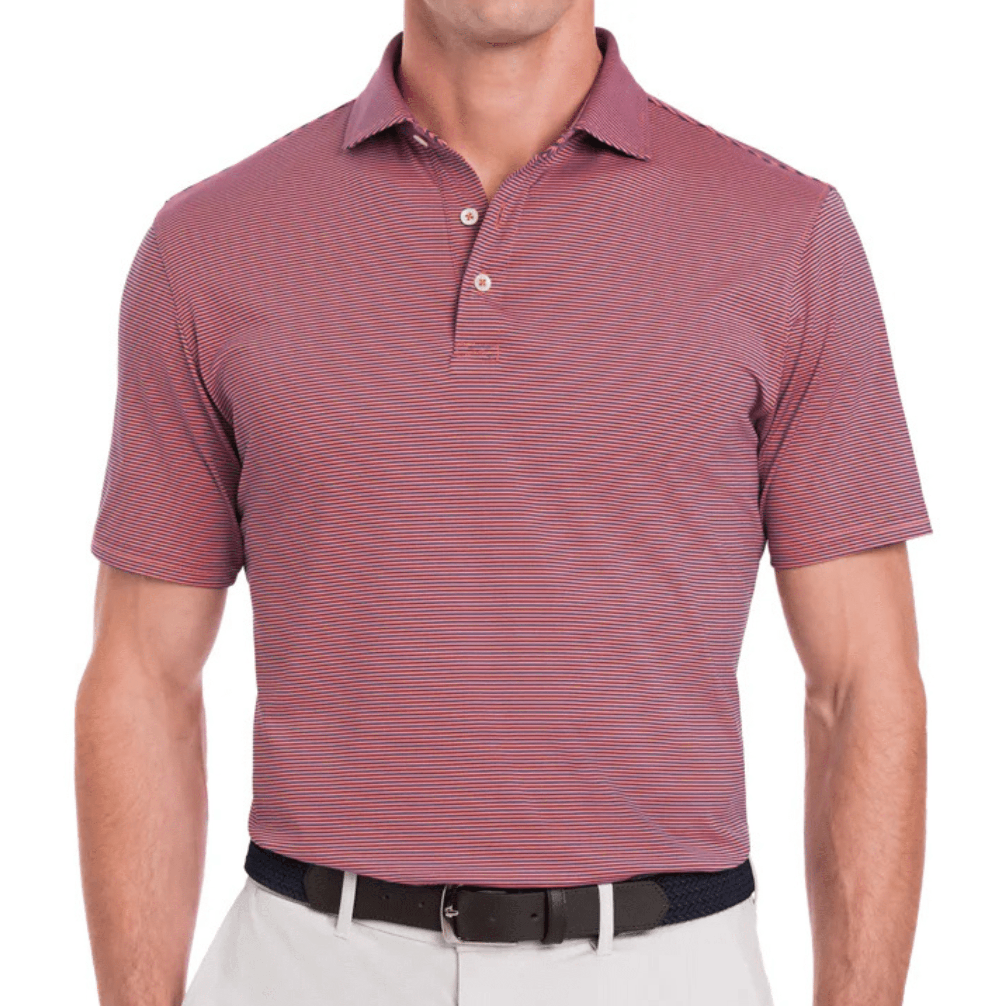 The Perkins features a modern two-color feed stripe pattern for understated good looks. Lightweight yarn-dyed performance fibers offer excellent hand feel and warm weather performance.