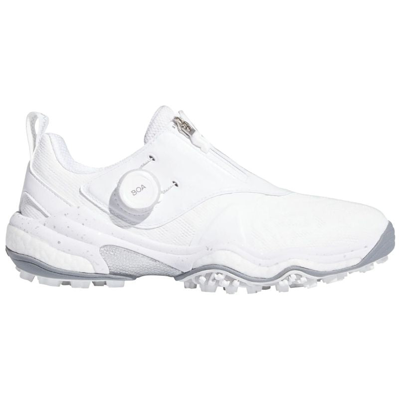 The adidas Women's Codechaos BOA 25 Golf Shoes fuse a stylish, convention-defying, waterproof upper with the company's most advanced tour-level footwear technologies. Among the premium performance features are adidas' legendarily comfortable BOOST and Lightstrike midsole, a stability-boosting 3D Torsion System, and a Twistgrip outsole that grips the ground ferociously. The Codechaos 25 is finished with a zipper shroud and a micro-adjustable BOA Fit System, allowing you to quickly find the perfect fit with the twist of a dial.