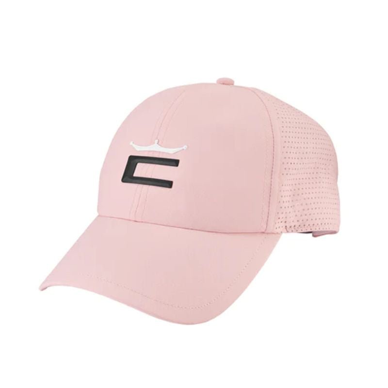 The Cobra Women's Crown Adjustable Golf Hat is crafted with a lightweight polyester blend with side and back panel ventilation. A moisture wicking performance sweatband helps you stay dry and a silicon "Crown C" logo on the front adds a touch of style.