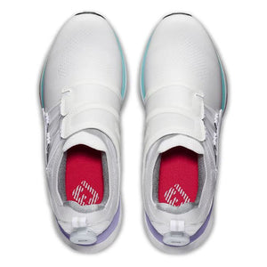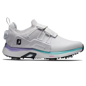 HyperFlex BOA golf shoes for women are specifically tuned for the modern golfer athlete. Hyper powered with a custom molded and integrated thermoplastic side wrap and saddle, this innovative design wraps around your foot to provide the perfect balance of control and stability through your swing while delivering all day walking comfort. HyperFlex features tuned for walking cushioning, added ankle padding, and an innovative, breathable, waterproof performance knit upper so you can play at the highest level. FJ, The #1 Shoe in Golf.