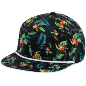 The Resortist conveys a casual sophistication with its bright arrangement of flora and fauna on a cap with a flat roped bill. Sublimated PING logos mingle with palm fronds and birds of paradise. Its 100% polyester fabrication means it will provide lasting quality, and it features a leather strap with a side closure to fit most.