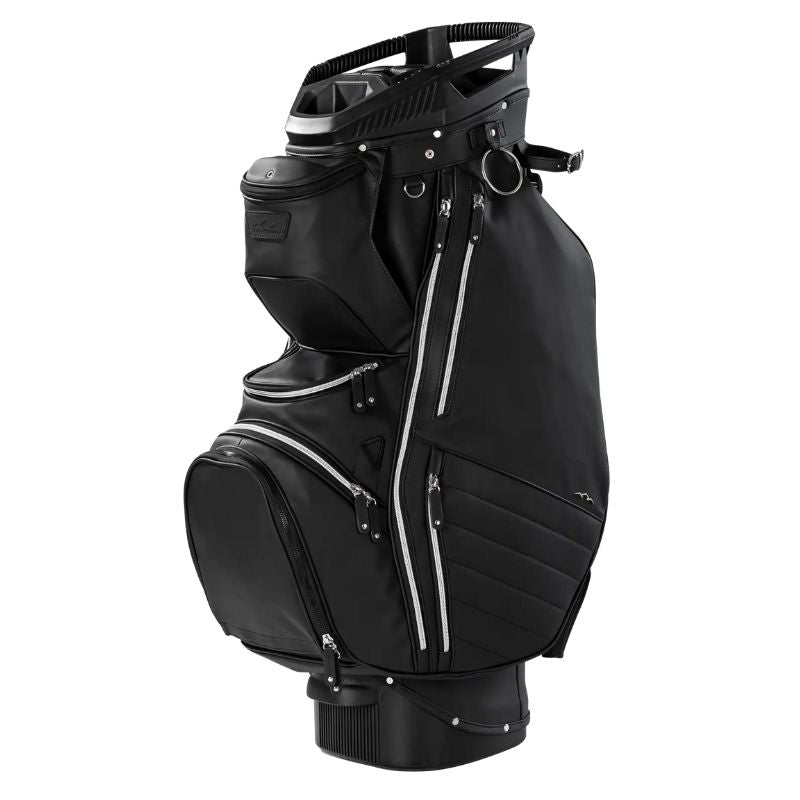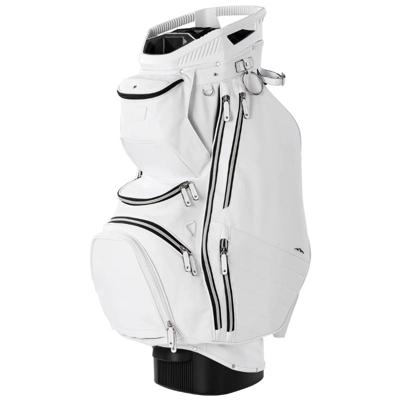 Crafted from luxurious Infinity Vinyl, the Matchplay, Sun Mountain's new premium cart offering, adds an upscale look to the company's class-leading bag features. 11 cavernous pockets provide a staggering amount of storage and organizational capacity, accommodating all your on-course needs. At the same time, a 14-way top with individual full-length dividers keeps your clubs organized and protected.
