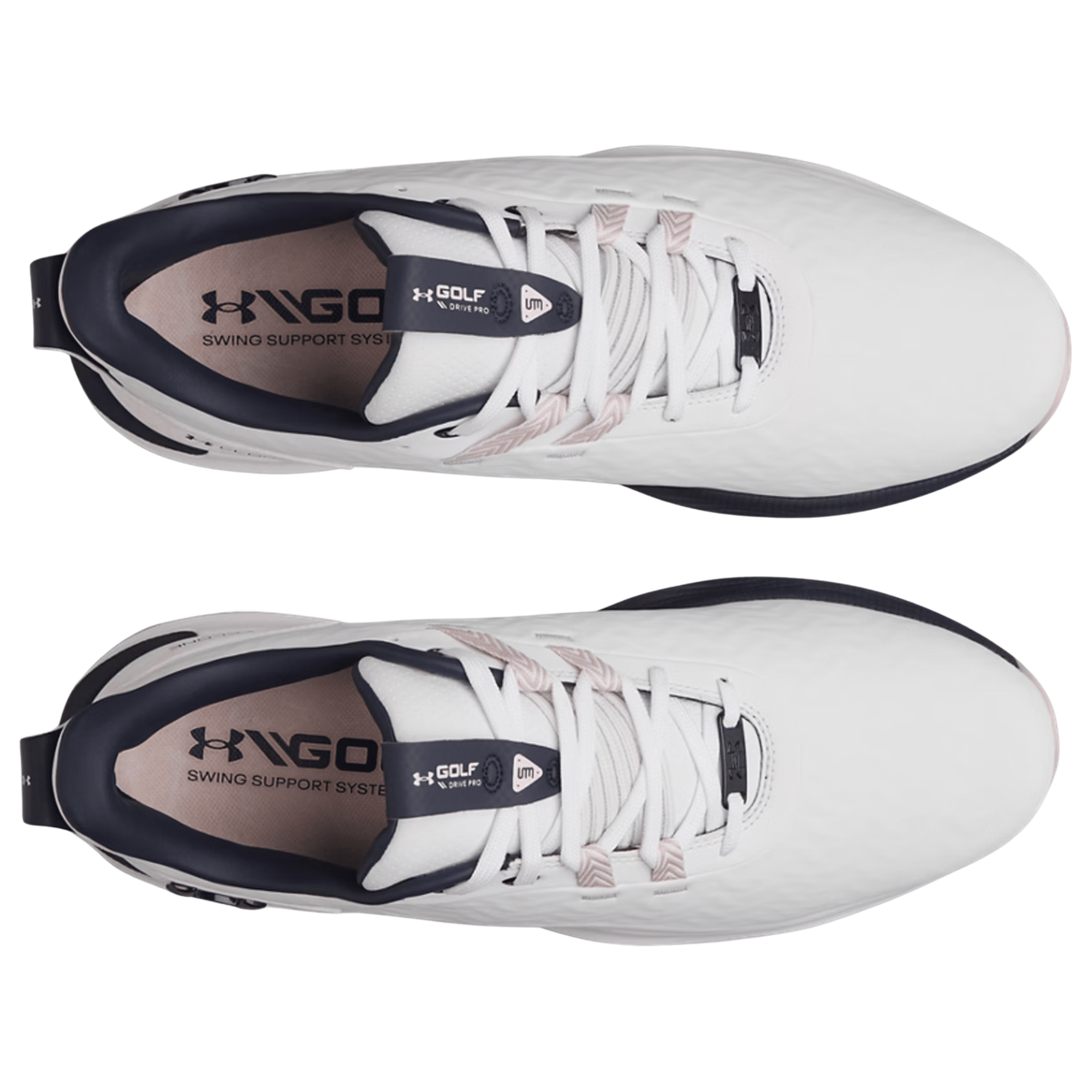 The new UA Drive Pro golf shoes are biomechanically engineered, and lab tested, to provide the traction, and diagonal and lateral support your feet need to unlock the power of your natural swing.