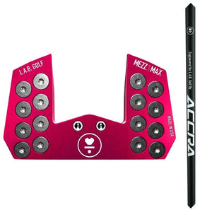 MEZZ.1 MAX Stock is our new oversized mallet putter that’s fully CNC machined from a billet of 6061 aircraft aluminum (body) and 303 stainless steel (midsection) to create outrageous stability. It includes 8 weights on the bottom that allow us to individually build each putter to a golfer’s exact specifications.